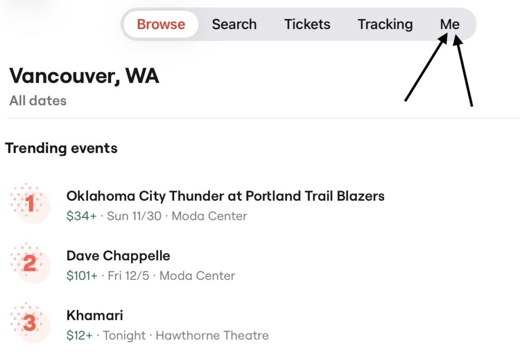 Download the SeatGeek app. Create an account. Go to the “Me” tab.
